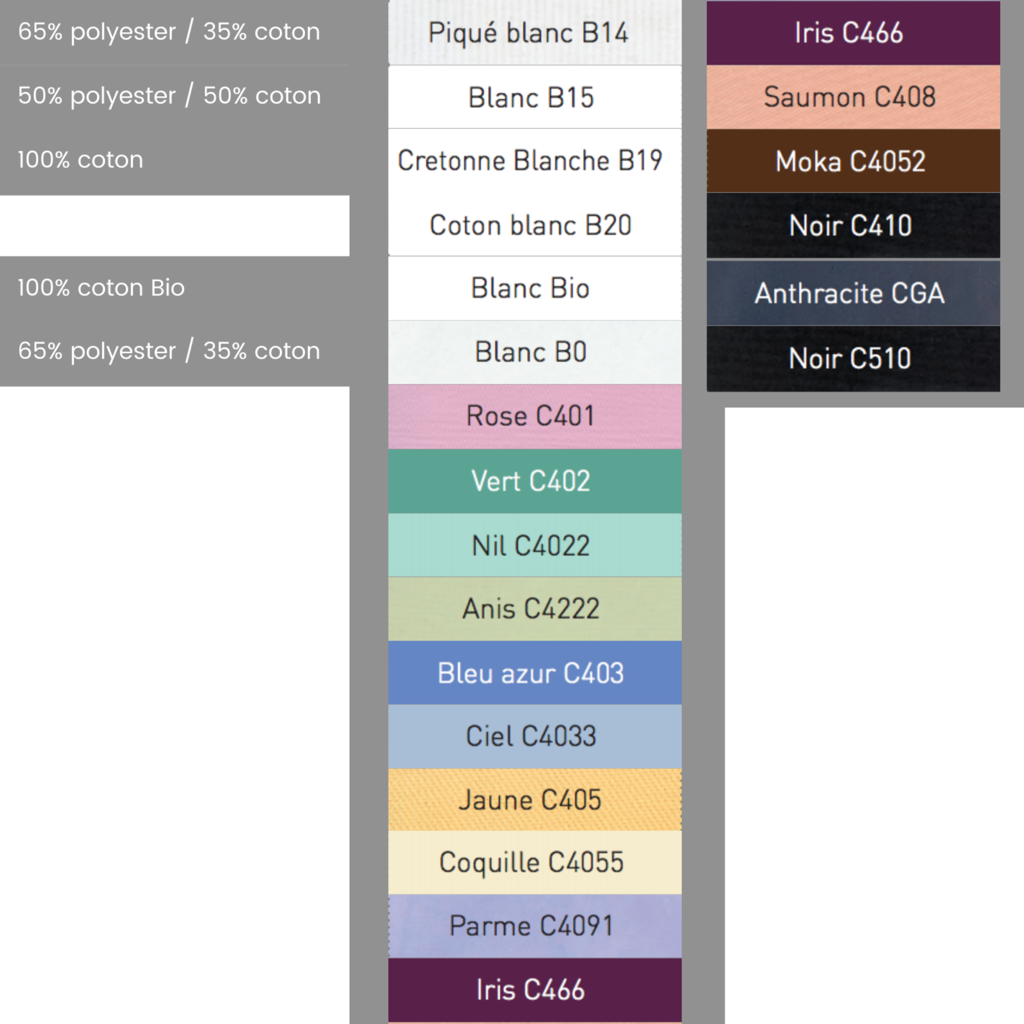 Composition : 65% polyester, 35% coton